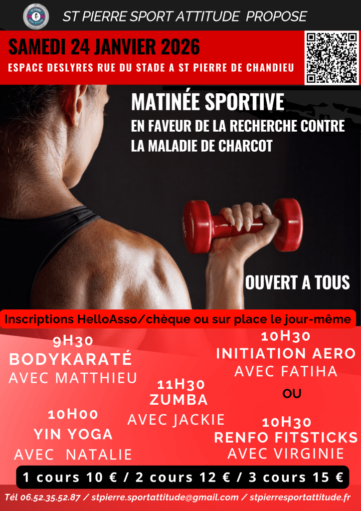 Venez profiter d’une matinée sportive et caritative en faveur de la recherche contre la maladie de Charcot, avec des séances adaptées à tous :